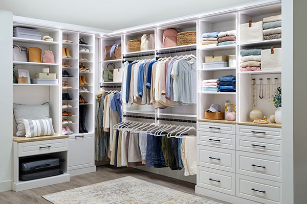Inspired Closets products are manufactured in the U.S. with durable materials and backed by a lifetime warranty. Mark shares, “Our materials are sourced from a centralized manufacturing facility in Grand Rapids, Michigan, known as the furniture capital of North America. The quality of our products is what truly sets us apart– including thicker edge banding, soft close hinges, and durable drawer glides.”