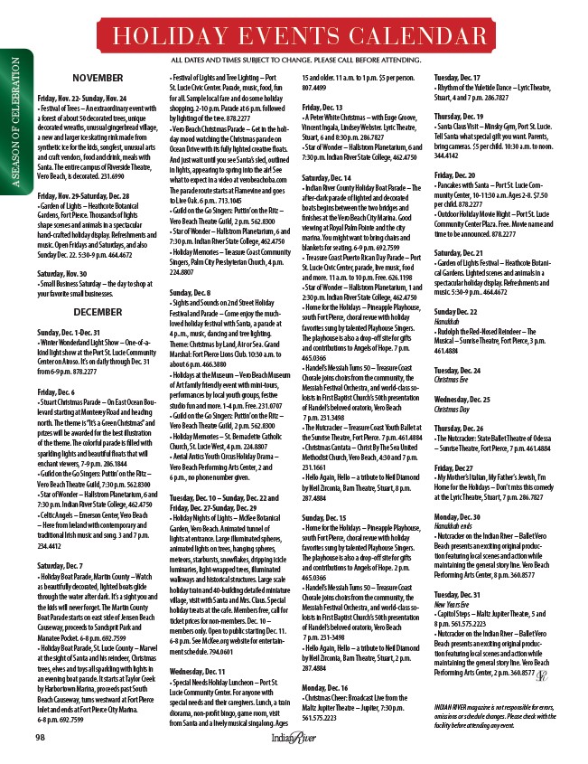HOLIDAY EVENTS CALENDAR