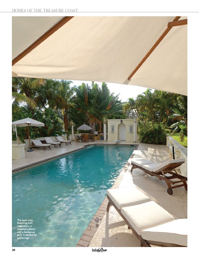 HOMES OF THE TREASURE COAST 34 >> In the west wing of the home, this large office/study can become a multi-use feature. The pool area, featuring lush vegetation, a restored cabana and a barbecue grill, is perfect for gatherings.