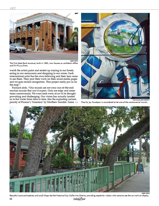 Beautiful courtyard eateries and small shops dot the historical Eau Gallie Arts District, providing respite for visitors who come to see the art work on display.