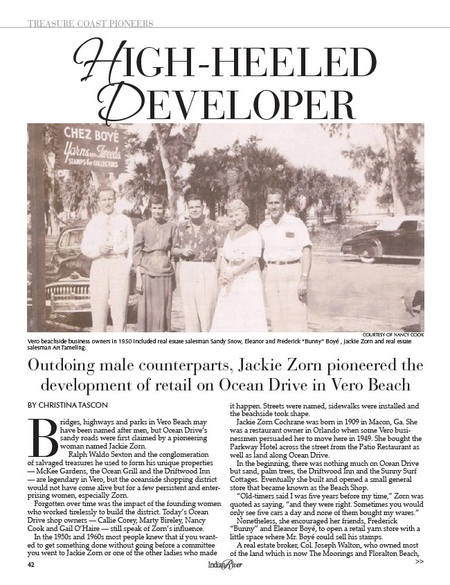 Vero beachside business owners in 1950 included real estate salesman Sandy Snow, Eleanor and Frederick “Bunny’’ Boyé , Jackie Zorn and real estate