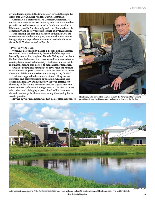 After years of planning, the Ardie R. Copas State Veterans' Nursing home in Port St. Lucie welcomed Heathman as its first resident in July.