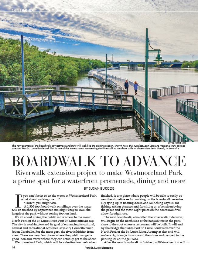 and Port St. Lucie Boulevard. This is one of the access ramps connecting the Riverwalk to the shore with an observation deck directly in front of it.