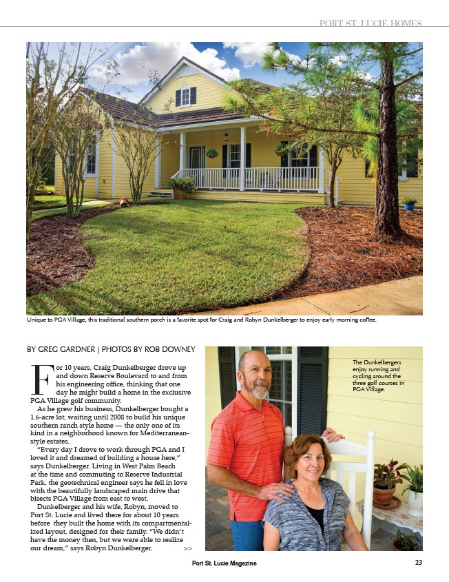 Unique to PGA Village, this traditional southern porch is a favorite spot for Craig and Robyn Dunkelberger to enjoy early morning coffee.