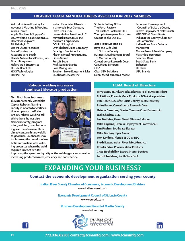 TREASURE COAST MANUFACTURERS ASSOCIATION 2022 MEMBERS