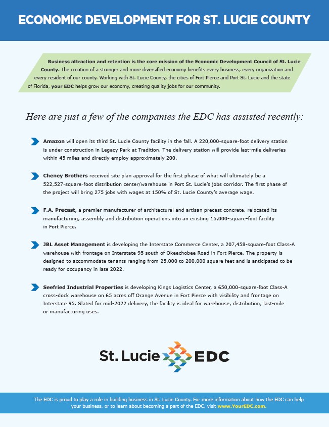 The EDC is proud to play a role in building business in St. Lucie County. For more information about how the EDC can help