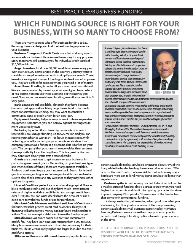 Hartman is the President of Pharus Funding Partners, LLC (PFP), and