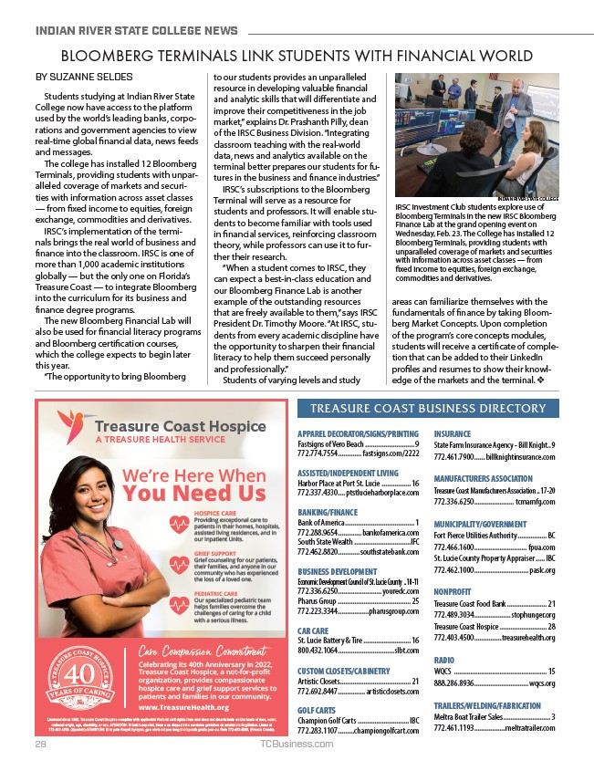 BLOOMBERG TERMINALS LINK STUDENTS WITH FINANCIAL WORLD