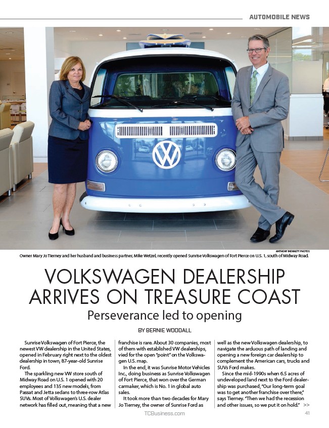 Owner Mary Jo Tierney and her husband and business partner, Mike Wetzel, recently opened Sunrise Volkswagen of Fort Pierce on U.S. 1, south of Midway Road.