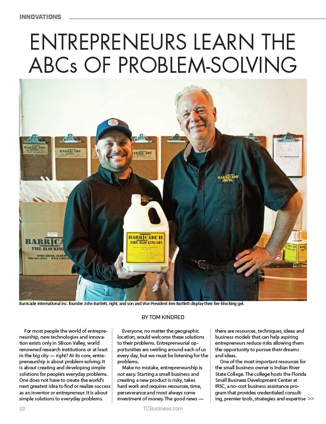 Barricade International Inc. founder John Bartlett, right, and son and Vice President Ben Bartlett display their fire-blocking gel.