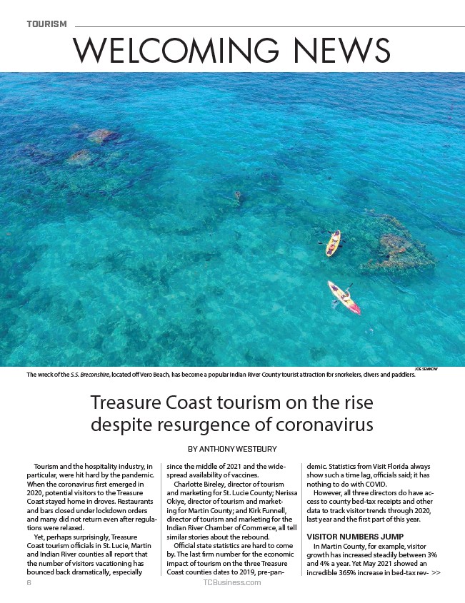 The wreck of the S.S. Breconshire, located off Vero Beach, has become a popular Indian River County tourist attraction for snorkelers, divers and paddlers.