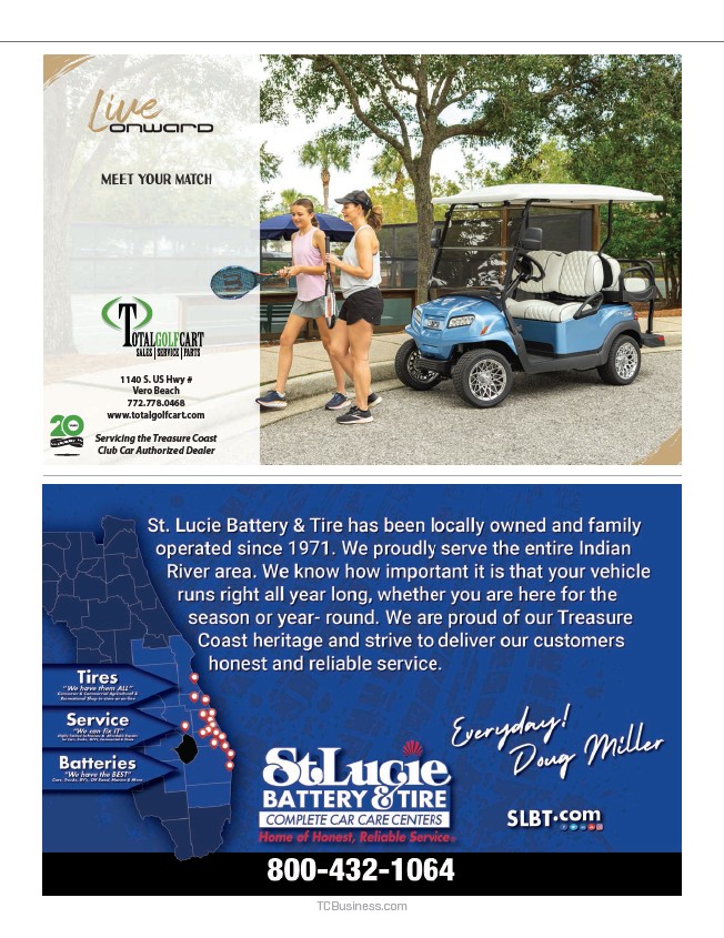 TCBusiness.com mEtYoRAtH 1140 S. US Hwy # Vero Beach 772.778.0468 www.totalgolfcart.com ANNIVERSARY Servicing the Treasure Coast Club Car Authorized Dealer