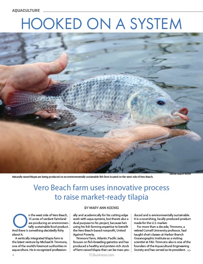 Naturally raised tilapia are being produced on an environmentally sustainable fish farm located on the west side of Vero Beach.