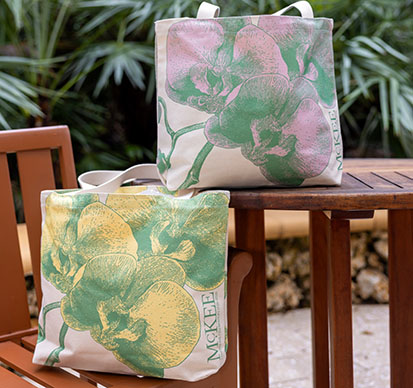 Introducing McKee’s Centennial Tote in time for the holidays. Celebrating a century of beauty, nature, and conservation the commemorative tote features the Garden’s signature Phalaenopsis orchid in pink and yellow. The natural canvas tote is made in Massachusetts. It is available exclusively at the Garden Gift & Book Shop. All proceeds support the Garden’s living collections.