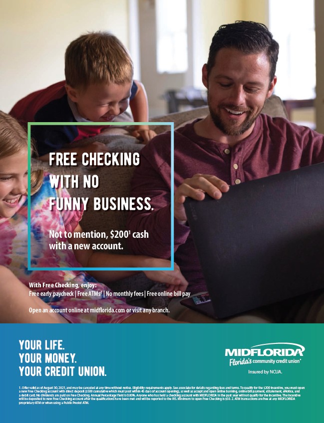 a debit card. No dividends are paid on Free Checking. Annual Percentage Yield is 0.00%. Anyone who has held a checking account with MIDFLORIDA in the past year will not qualify for the incentive. The incentive