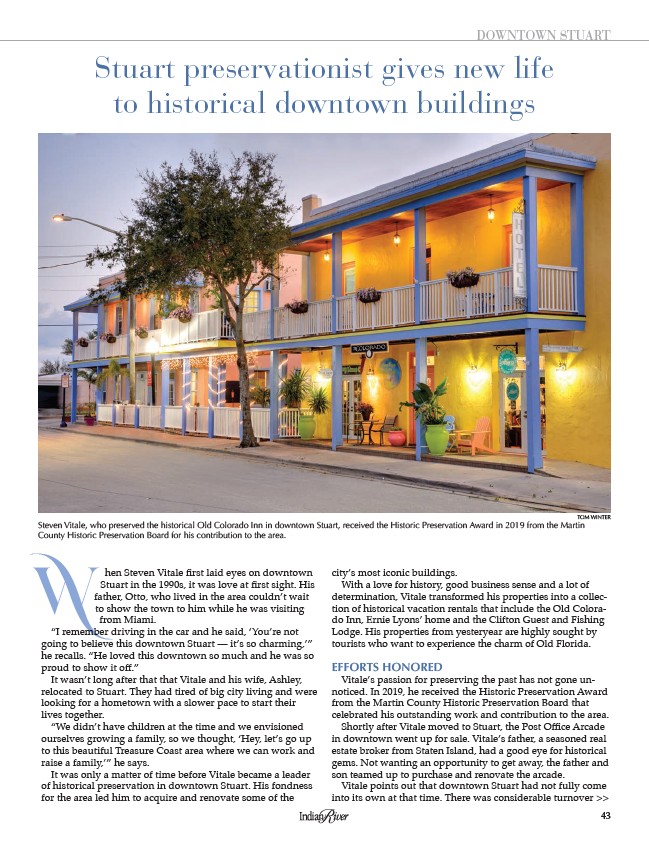 Steven Vitale, who preserved the historical Old Colorado Inn in downtown Stuart, received the Historic Preservation Award in 2019 from the Martin