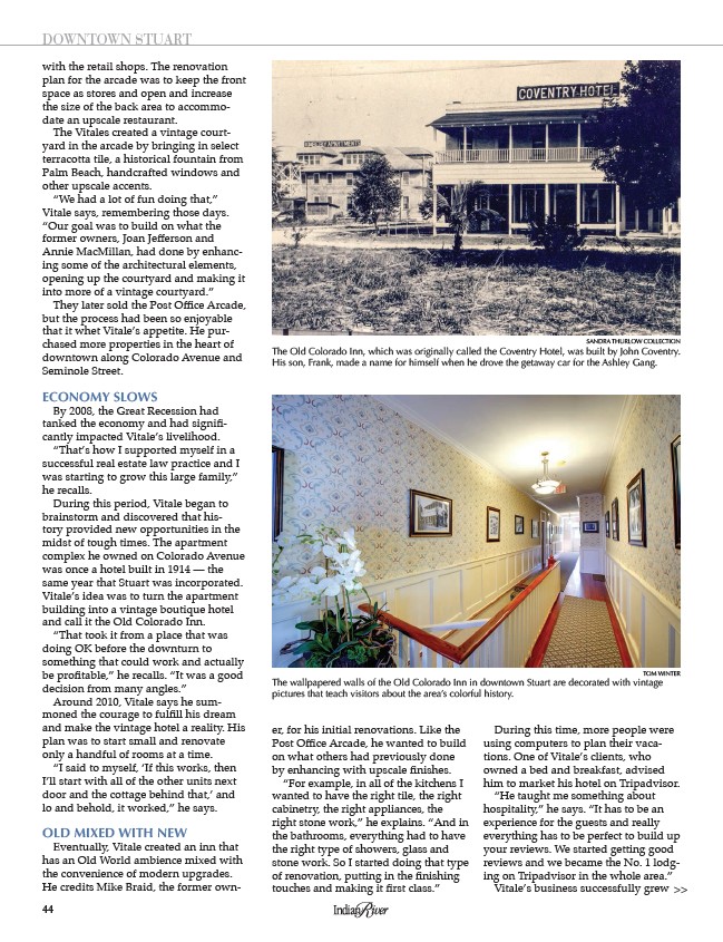 The wallpapered walls of the Old Colorado Inn in downtown Stuart are decorated with vintage