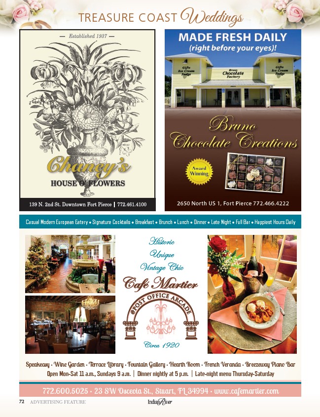 772.600.5025 • 23 SW Osceola St., Stuart, FL 34994 • www.cafemartier.com