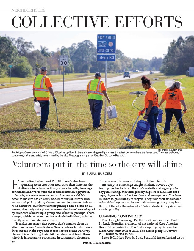 containers, shirts and safety vests issued by the city. The program is part of Keep Port St. Lucie Beautiful.