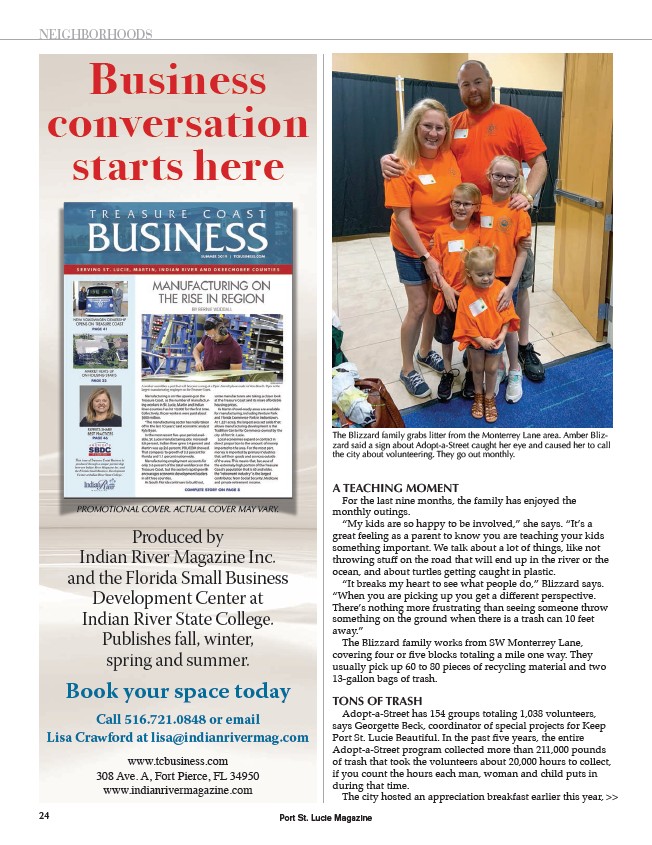 The Blizzard family grabs litter from the Monterrey Lane area. Amber Blizzard
