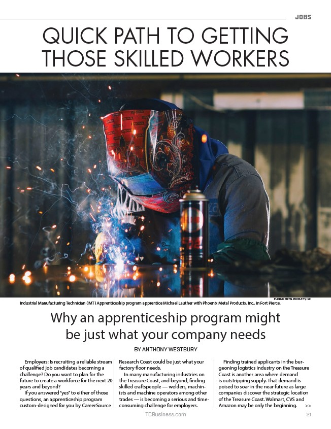 Industrial Manufacturing Technician (IMT) Apprenticeship program apprentice Michael Lauther with Phoenix Metal Products, Inc., in Fort Pierce.