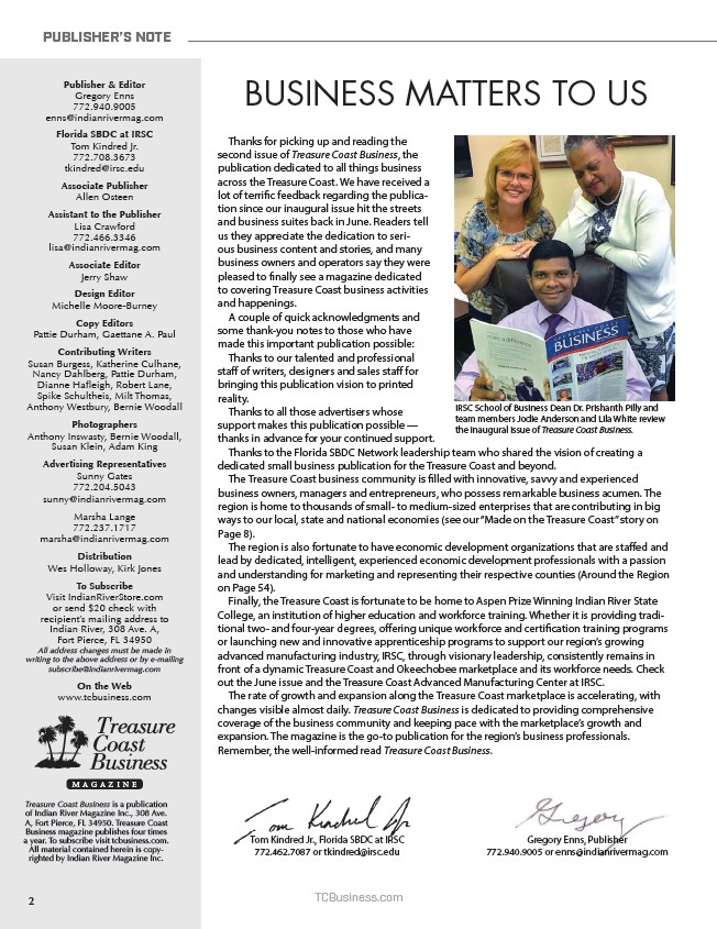 changes visible almost daily. Treasure Coast Business is dedicated to providing comprehensive