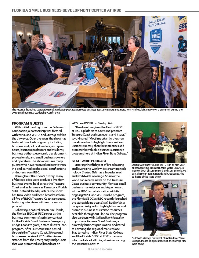 The recently launched statewide Small Biz Florida podcast promotes business assistance programs. Here, Tom Kindred, left, interviews a presenter during the
