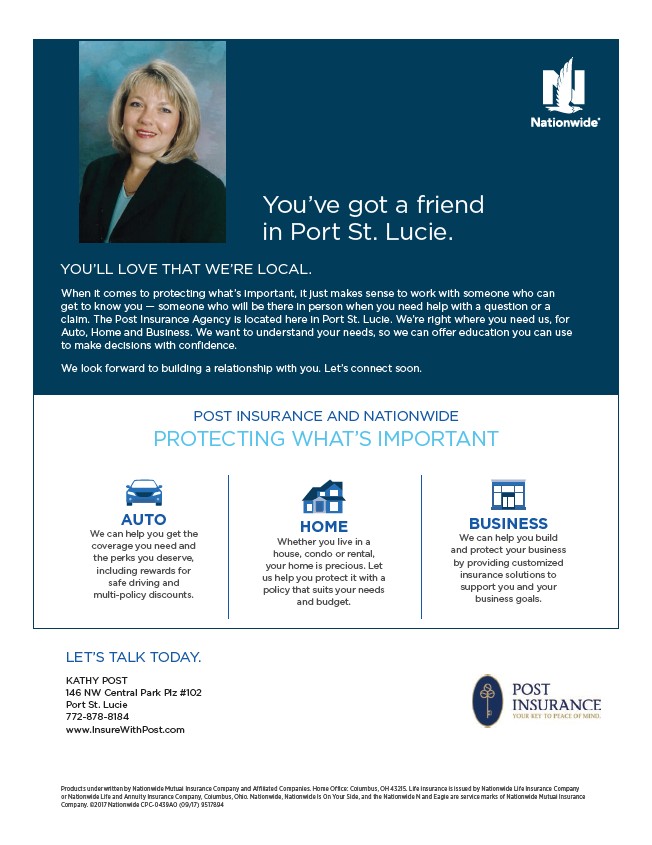 claim. The Post Insurance Agency is located here in Port St. lucie. we’re right where you need us, for