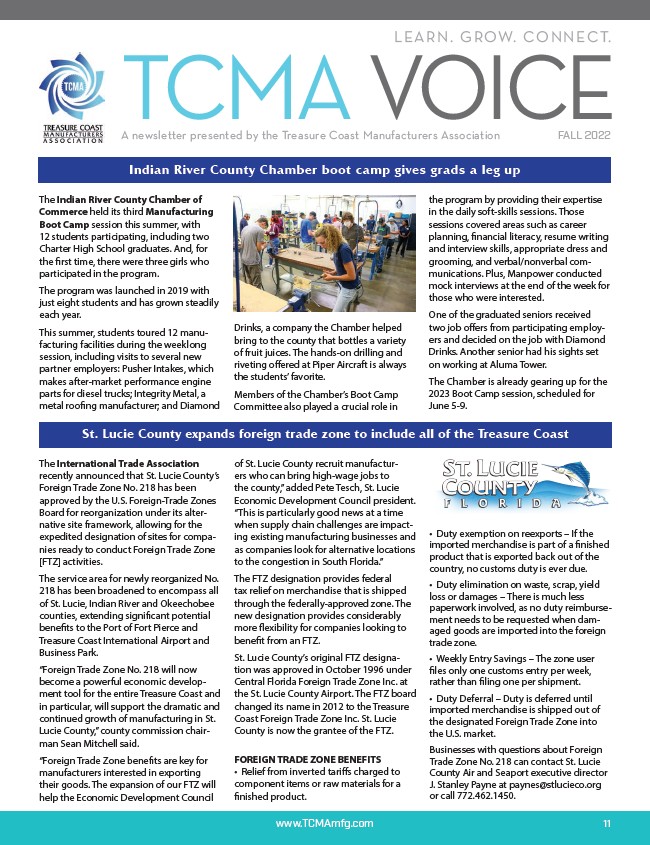 TCMA VOICEA newsletter presented by the Treasure Coast Manufacturers Association
