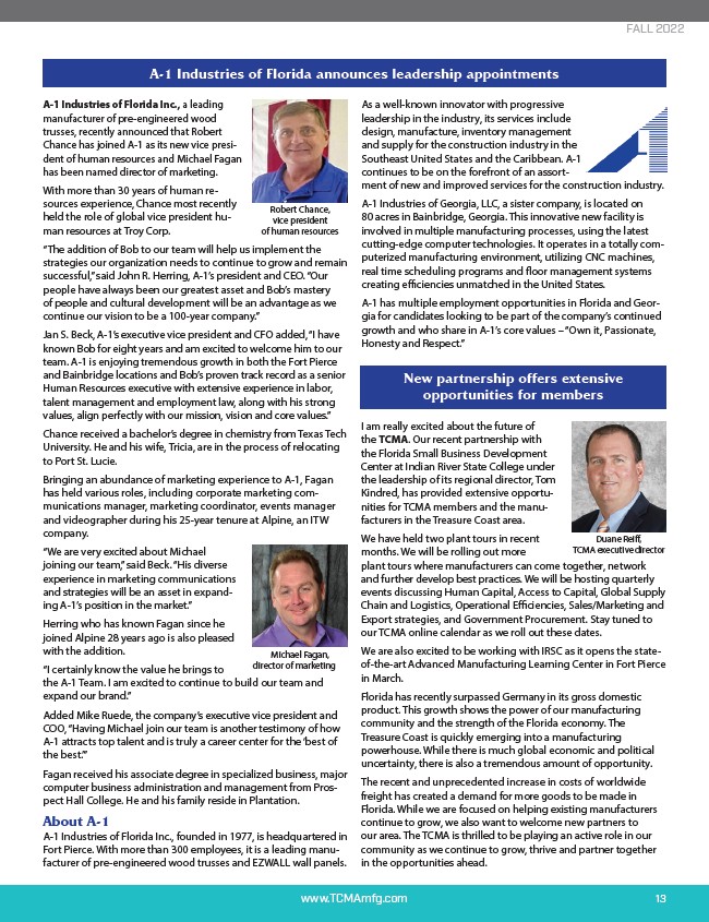 team. A-1 is enjoying tremendous growth in both the Fort Pierce