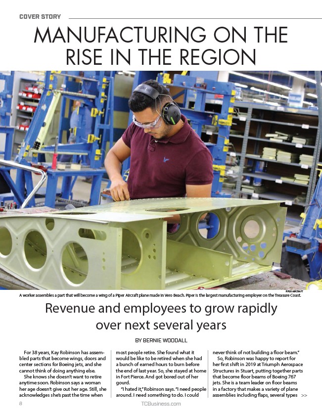 A worker assembles a part that will become a wing of a Piper Aircraft plane made in Vero Beach. Piper is the largest manufacturing employer on the Treasure Coast.