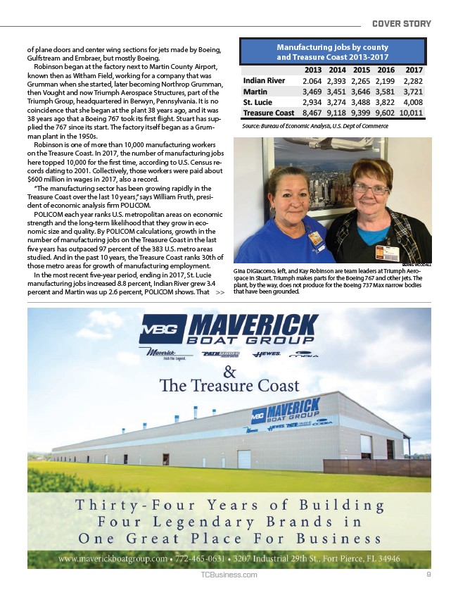 on the Treasure Coast. In 2017, the number of manufacturing jobs
