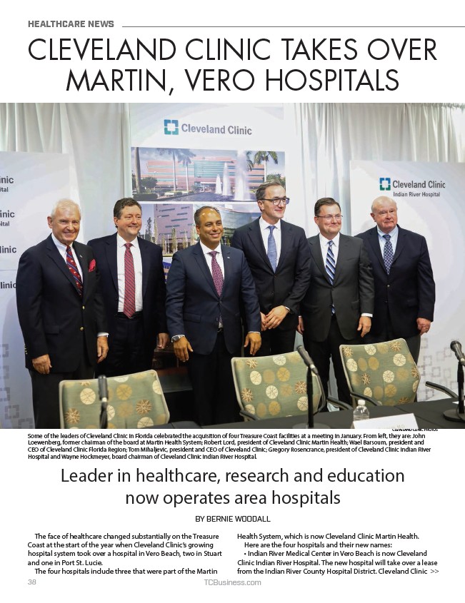 Some of the leaders of Cleveland Clinic in Florida celebrated the acquisition of four Treasure Coast facilities at a meeting in January. From left, they are: John