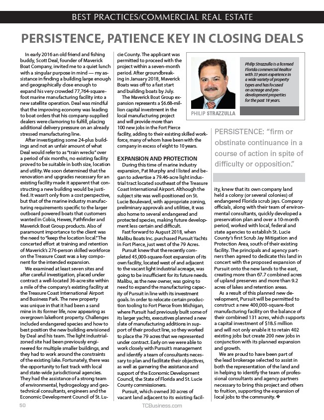PERSISTENCE, PATIENCE KEY IN CLOSING DEALS