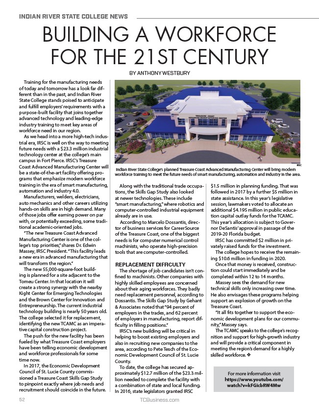 Indian River State College’s planned Treasure Coast Advanced Manufacturing Center will bring modern