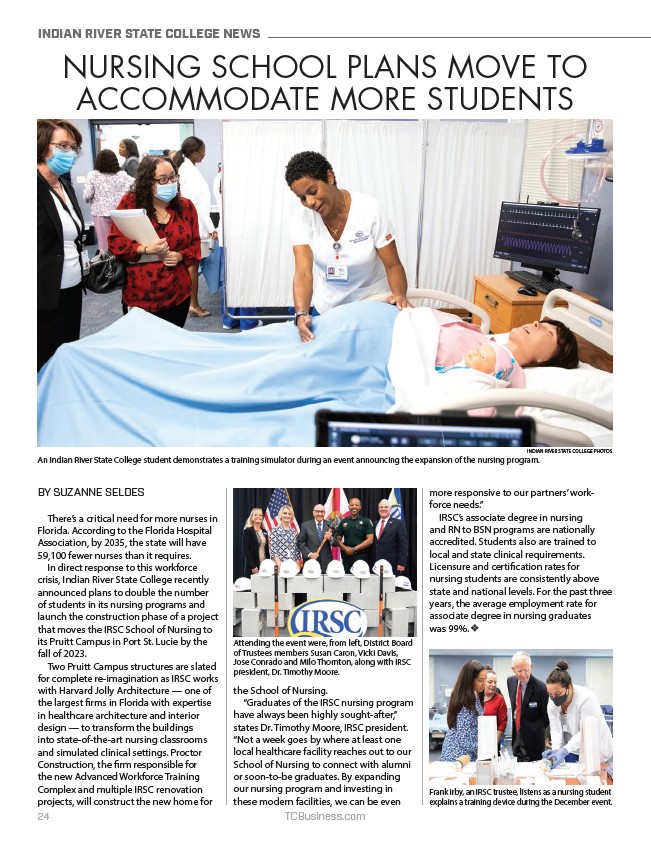 An Indian River State College student demonstrates a training simulator during an event announcing the expansion of the nursing program.