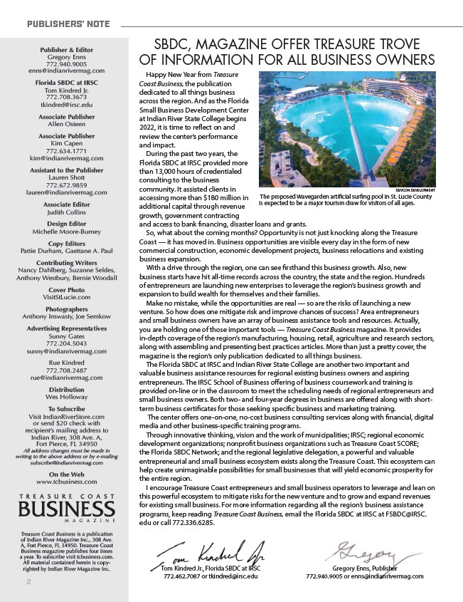 you are holding one of those important tools — Treasure Coast Business magazine. It provides