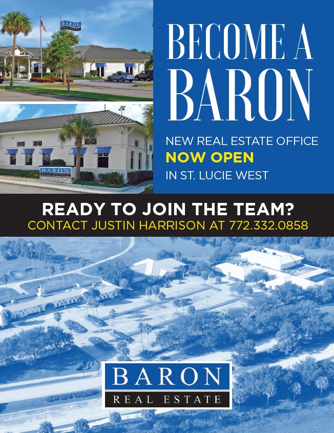 BECOME A BARON NEW REAL ESTATE OFFICE NOW OPEN IN ST. LUCIE WEST READY TO JOIN THE TEAM? CONTACT JUSTIN HARRISON AT 772.332.0858