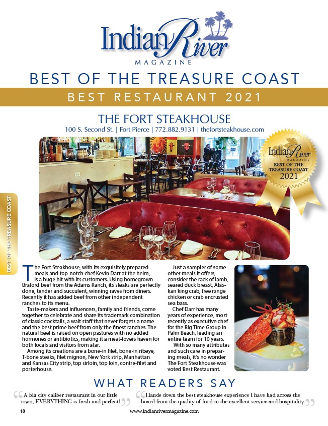 100 S. Second St. | Fort Pierce | 772.882.9131 | thefortsteakhouse.com