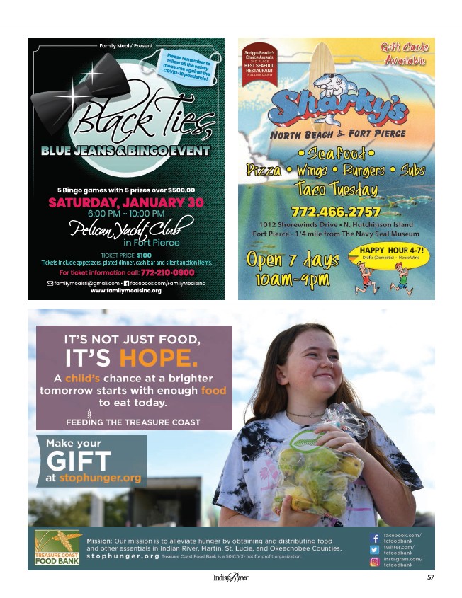 57 Tickets include appetizers, plated dinner, cash bar and silent auction items.