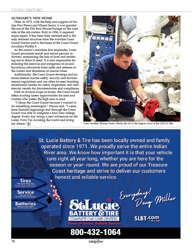 my dream.” Crew member Thomas Aveni checks the oil in the engine room of the USCGC Ibis.