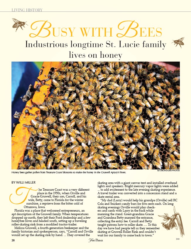 Honey bees gather pollen from Treasure Coast blossoms to make the honey in the Gruwell Apiary’s hives.