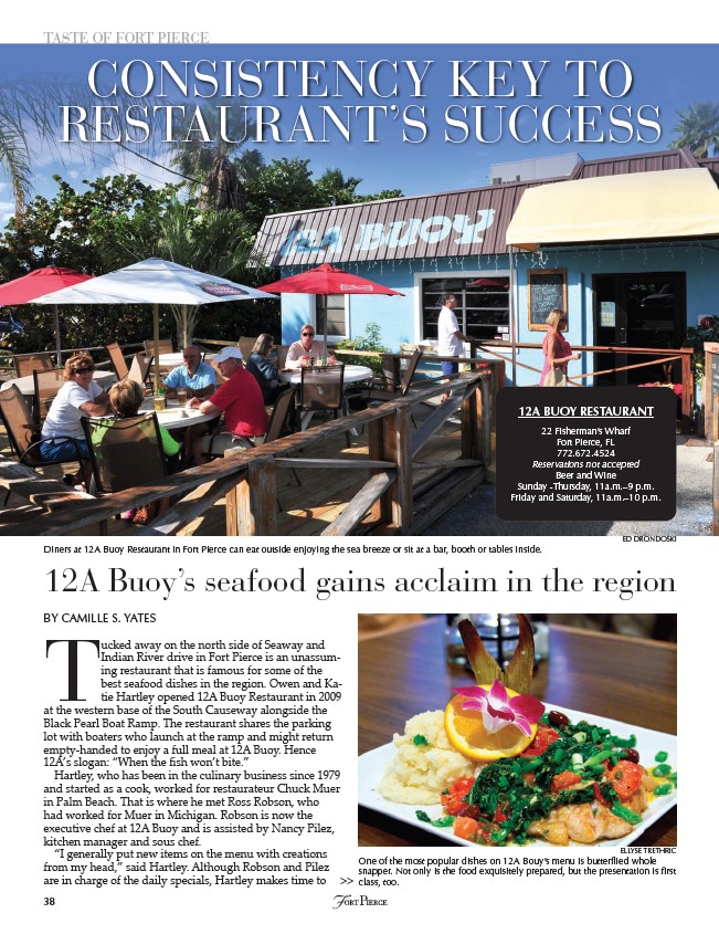 Diners at 12A Buoy Restaurant in Fort Pierce can eat outside enjoying the sea breeze or sit at a bar, booth or tables inside.