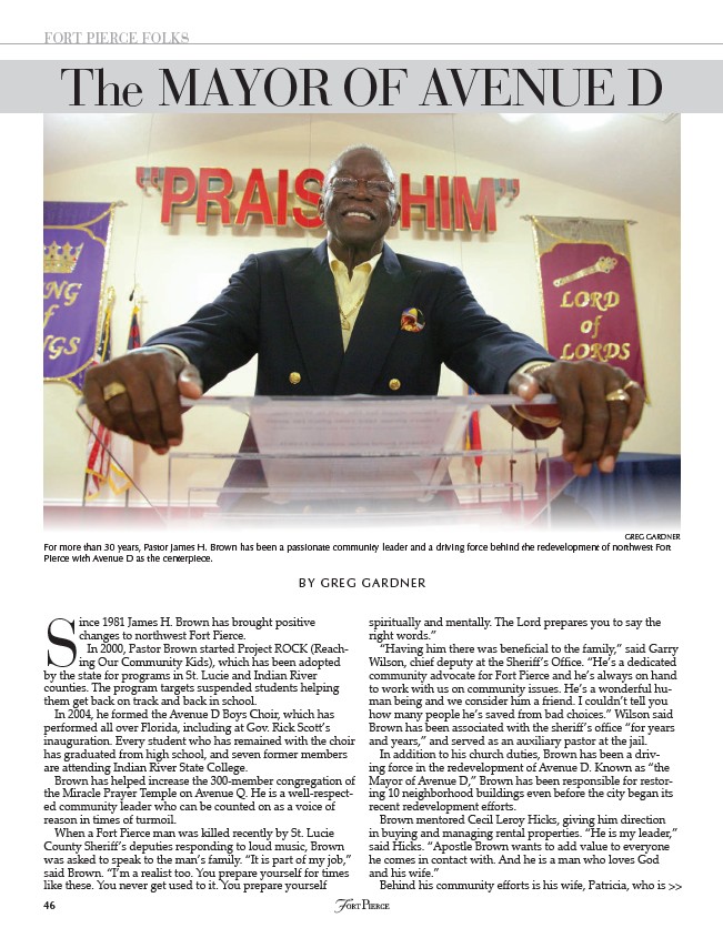 For more than 30 years, Pastor James H. Brown has been a passionate community leader and a driving force behind the redevelopment of northwest Fort